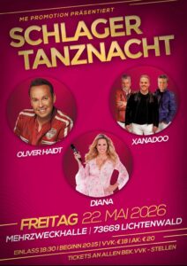 Tickets unter: https://www.easyticket.de/veranstaltung/schlager-tanznacht/104925